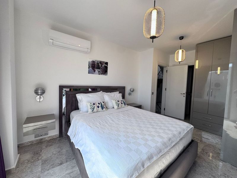 The property has a modern interior with sea and mountain views as well as its own pool.